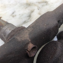 As removed, w/o damage. Not cleaned purposely to prevent rust until sold