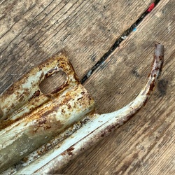 Assumed someone started to mount it & the Decklid closed, the outer lip caught & it was pried opened then removed, Not Welded on,