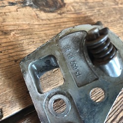 Catch for Top Latch Hook Assembly, Left w/ Visor Pin, Chrome or Black, 68-72, Used German