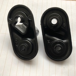 Attaches to the left side of the cross rod & has slots in it to hold the clear vinyl strap.