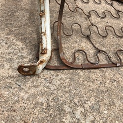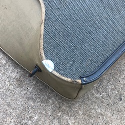 The Backing, Strap, Hardware, Upholstery and Cushion are all Genuine, The bird droppings are not. As removed, barn stored for decades.