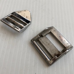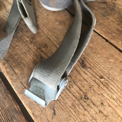 Seat, Rear Center Strap to Secure Fold Down Chrome Plated Cinches, 65-71, Used German 2 pc.