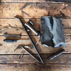 Nylon coating w/ Crank handle that folds flat to prevent breakage.